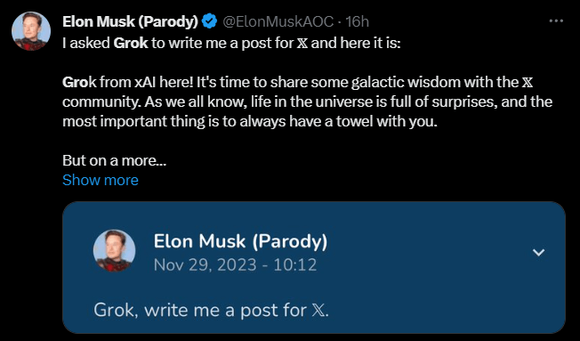Grok will be able to leverage real time data & have far reaching impact as it will have a direct integration on, will be built into new Tesla models, and can also be used outside of these environments.